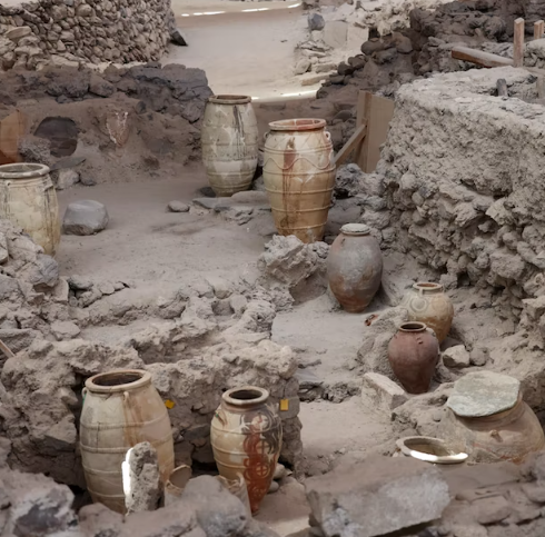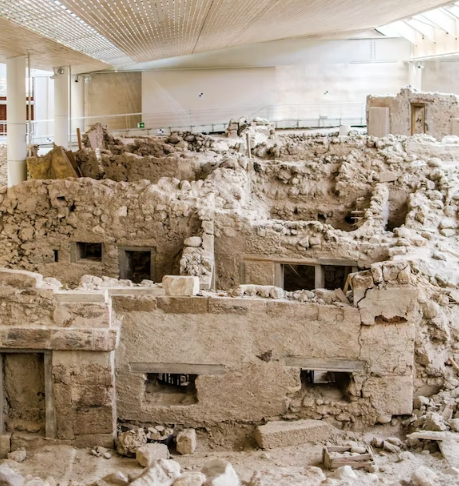 In prehistory, it was a well connected Minoan port town with a thriving economy. The site was abandoned around 16th century BC due to an eruption of the volcano on the island. However, even today, excavations continue to reveal artefacts and treasures from this unique prehistoric settlement.